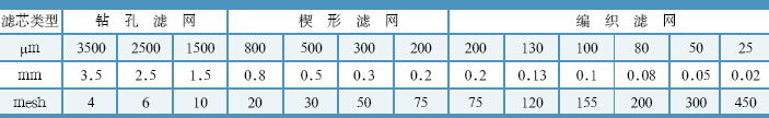 ● 钻孔滤网 ● 编织滤网 ● 楔形滤网 |