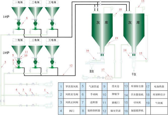 ②PSG系列气固喷射器组成的气力输送系统,在现场灰量允许的条件下,可采用两个灰斗共用一台泵的布置方式,一般设备数量少,使得整个系统简洁可靠。
